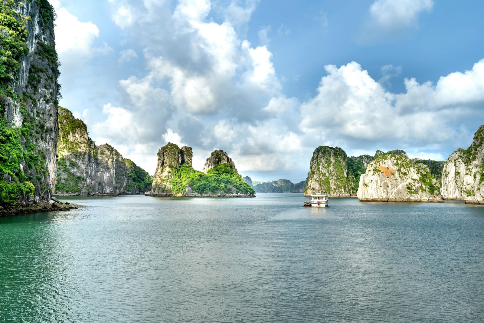 08h00: Xe đưa đoàn ra cảng Bãi Cháy, đoàn lên tàu tham quan Vịnh Hạ Long với 1.969 hòn đảo lớn nhỏ, là một trong 7 kỳ quan thiên nhiên được thế giới công nhận. ngắm nhìn toàn cảnh Vịnh Hạ Long từ trên Tàu với Hòn Gà Chọi, hòn Đinh Hương, khám phá động Thiên Cung v..vv.