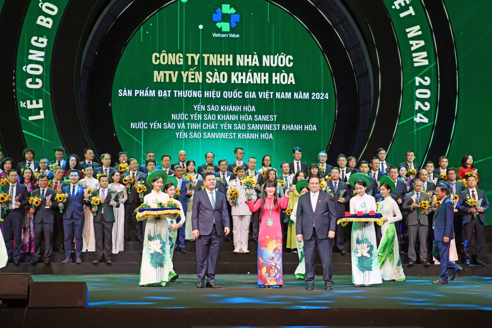 Tối 04/11 tại Hà Nội, Hội đồng Thương hiệu Quốc gia Việt Nam tổ chức Lễ công bố sản phẩm đạt Thương hiệu quốc gia (THQG) Việt Nam năm 2024. Đây là Chương trình duy nhất của Chính phủ Việt Nam nhằm quảng bá hình ảnh quốc gia, thương hiệu quốc gia thông qua thương hiệu sản phẩm và dịch vụ; giúp các doanh nghiệp Việt khẳng định chất lượng, tạo dựng uy tín và nâng cao sức cạnh tranh cho các doanh nghiệp trên thị trường trong nước và quốc tế. Năm 2024, có 190 doanh nghiệp với tổng số 359 sản phẩm đạt Thương hiệu quốc gia Việt Nam. Công ty Yến sào Khánh Hòa vinh dự là đơn vị sản xuất và kinh doanh yến sào duy nhất cả nước nhận Chứng nhận Thương hiệu Quốc gia với 5 dòng sản phẩm: Yến sào Khánh Hòa, Nước Yến sào Khánh Hòa Sanest, Nước Yến sào Sanvinest Khánh Hòa, Yến sào Sanvinest Khánh Hòa chính hiệu và Tinh chất Yến sào Khánh Hòa Sanvinest. Tỉnh khánh Hoà chỉ có duy nhất 1 doanh nghiệp đạt Thương hiệu Quốc gia. Đây là sự ghi nhận cho những nỗ lực lớn của Công ty trong việc xây dựng và phát triển thương hiệu, mang đến những sản phẩm yến sào chất lượng cao, góp phần nâng cao vị thế của Việt Nam trên trường quốc tế.